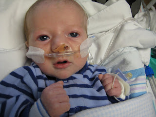 I think you will agree that the second picture is much better. He still has a nasal cannula just to provide moisture. He is completely breathing on his own. Mary and I kept commenting on what a difference this is compared to one week ago. Last Saturday we were looking at emergency heart surgery. Now we are amazed at how fast he is recovering and are looking forward to the day he will be coming home. It is a TREMENDOUS SUCCESS for his team. His team is made up of doctors, nurses, technicians, respiratory therapists, family, friends, priests, sisters, people who did not even know him but prayed for him just because someone asked, saints, and parents. It is a team effort and we are winning!